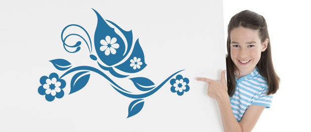Nálepku na stenu motýľ s kvetinou na krídlach vyrábame zo špeciálnych fólií určených na polepovanie interiérových stien. nálepku ponúkame v 48 farbách v minimálnom rozmere 15×11.9 cm. Nálepka na stenu motýľ s kvetinou na krídlach ozdobí stenu každého bytu či nábytok. Katalógové číslo nálepky: 12948. Keď objednáte nálepku dnes