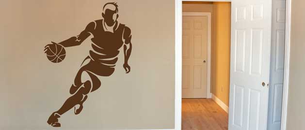 Nálepku na stenu basketbalový hráč vyrábame zo špeciálnych fólií určených na polepovanie interiérových stien. nálepku ponúkame v 48 farbách v minimálnom rozmere 14×20 cm. Samolepka na stenu basketbalový hráč ozdobí stenu každého bytu či nábytok. Katalógové číslo nálepky: 11849. Keď objednáte nálepku dnes